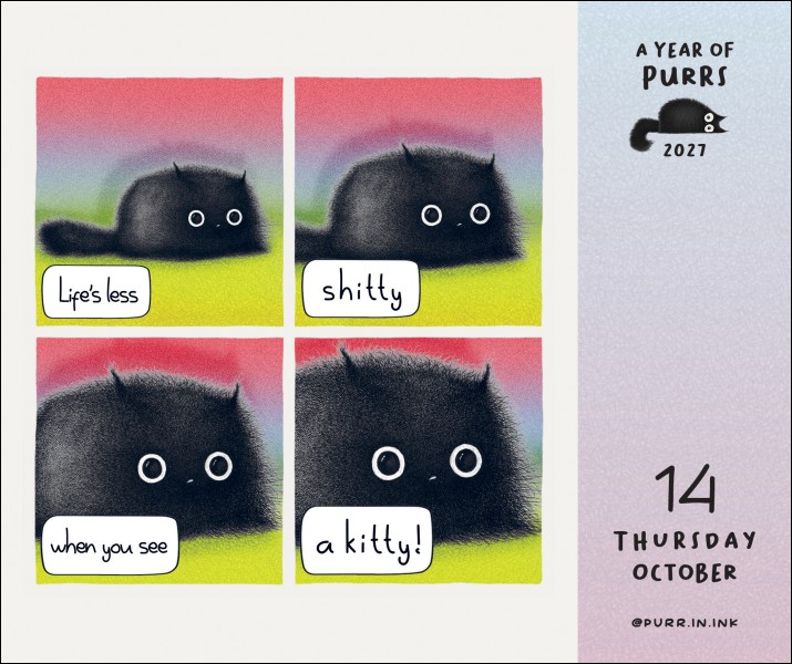 Full of paw-sitive thoughts, love bites, and commandeered bed sheets, A Year of Purrs Day-to-Day Calendar is purr-fect for cat lovers and anyone in need of a daily dose of feline joy! From start to finish, this delightful calendar by Portuguese illustrator Luis Coelho—creator of @purr.in.ink—delivers gentle wisdom, playful snark, and sweary affirmations. Part mischief, part magic, it's guaranteed to keep you smiling all year long.