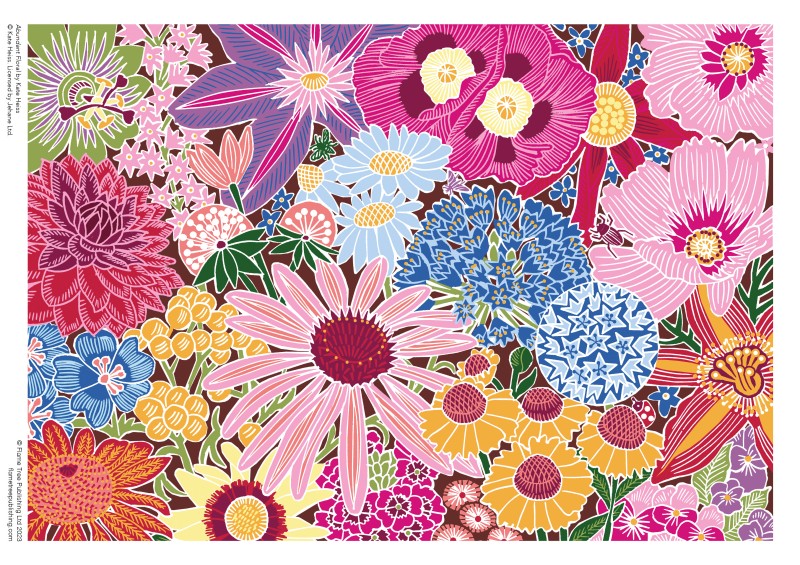 Part of a new, exciting series of ethical, sustainable and earth-friendly jigsaw puzzles that feature powerful and popular works of art. This high-quality, 1000-piece jigsaw puzzle from Flame Tree is made with all FSC-certified paper, board and bag, with sturdy pieces and no shrink-wrap. The 1000 pieces will satisfy your need for a challenge, with the charming Abundant Floral by Kate Heiss. Intended for adults and children over 13 years. Not suitable for children under 3 years due to small parts. Includes an A4 poster for reference. Finished Jigsaw size 735 x 510mm / 29 x 20 ins.