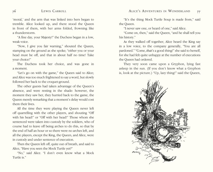Containing both Alice's Adventures in Wonderland and Through the Looking-Glass this new edition brings together the classic tales to offer the full story of Alice, the Red Queen, the mad Hatter and the incredible cast of characters created by mathematician and king of nonsense verse Charles Lutwidge Dodgson. Beloved characters whirl through a world of talking creatures, disappearing cats and madcap peculiarity told with swift economy by a writer whose influence on modern fantasy is often overlooked. Much filmed (including Tim Burton's award winning Alice in Wonderland), animated and republished Dodgson's work is a wildly entertaining ride for children, but packed with symbols and satire for the adult reader too.