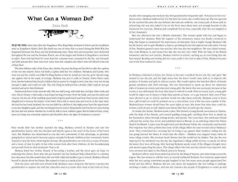 What if the course of history had been changed by a different decision, a different victor, a different invention? Utopian stories and alternative history stories by H.G. Wells, Nathaniel Hawthorne, Castello Holford and others are combined here with new stories by new writers from open submissions, exploring the variety and delight of alternative history to reimagine the world around us: What if the Ancient Egyptians had conquered Rome? What if World War II had been won by the loser, not the victors? What if women had ruled the world for 4000 years not men?