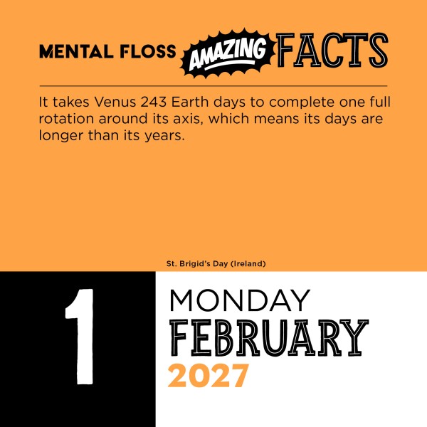Feed your curiosity one day at a time with the Amazing Facts from Mental Floss 2027 Day-to-Day Calendar. Known for their smart, surprising, and delightfully quirky trivia, the editors at Mental Floss have curated a new year of bite-sized facts to keep you entertained and looking smart.