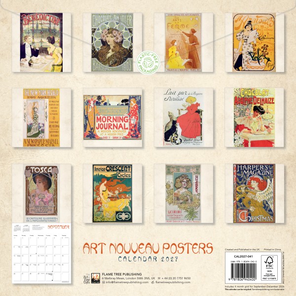 The turn of the twentieth century brought an exciting new art form: Art Nouveau posters celebrated the joie de vivre of the modern age through promoting both commercial products and cultural exhibitions in their own beautiful style. This calendar includes works by such celebrated artists as Eugène Grasset, Théophile Alexandre Steinlen and Leopoldo Metlicovitz. Informative text accompanies each work, and the datepad features previous and next month’s views. Printed on FSC-certified paper, with plastic-free packaging.