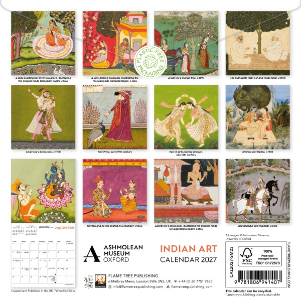 The original Ashmolean Museum opened in 1683 as Britain’s first public museum, and the world’s first university museum. Today, the Ashmolean Museum of Art and Archaeology houses Western Art, Eastern Art, Antiquities, Cast Gallery and the Coin Room. This mini calendar celebrates the fascinating collection of Indian art at the Ashmolean Museum. Informative text accompanies each month and the date pad features previous and next month's views. Printed on FSC-certified paper, with plastic-free packaging.