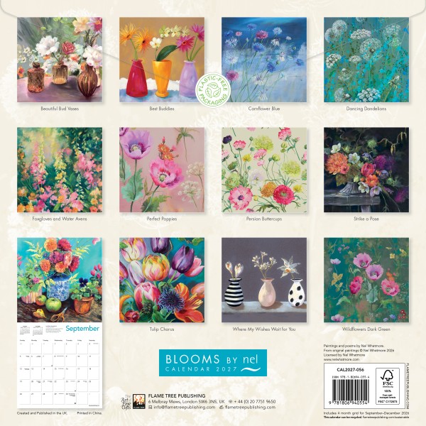 This calendar is a collection of the beautiful floral works of contemporary artist Nel Whatmore. In utilizing numerous types of materials including oils and pastels, Nel creates canvases bursting with beautiful colour and texture. Focusing on 12 of Nel’s stunning depictions of natural beauty, this art calendar is a joy to behold. The datepad features previous and next month’s views. Printed on FSC-certified paper, with plastic-free packaging.