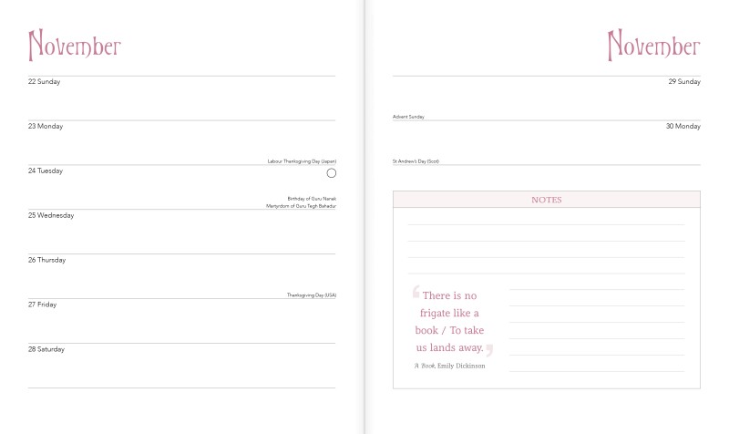 Artists throughout the centuries have been drawn to readers as their subject, depicting them absorbed by literature in a variety of different settings. With art by Alfred Stevens as its cover, this desk diary features beautiful paintings from a range of artists, as well as inspirational quotes celebrating the love of reading and joy of books. Additional content is included for readers to monitor their monthly reading progress, create wish lists for their TBR pile and collect their own treasured quotes. Printed on FSC-certified paper.