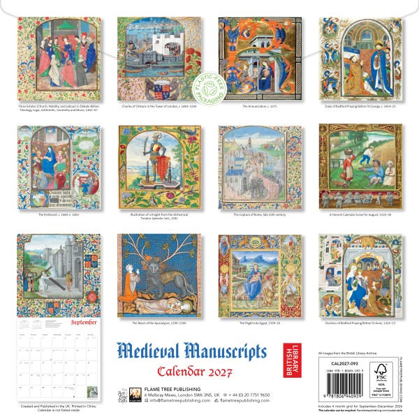 With their decorations, images, bright pigments and finishing touches of gold leaf, illuminated manuscripts are beautiful objects page by page. Drawing from the British Library’s extensive collection, this wall calendar features 12 stunning and intricate details. Whether familiar with medieval history or an appreciator of fine craftsmanship, this calendar provides a visual treat. Informative text accompanies each work and the datepad features previous and next month’s views. Printed on FSC-certified paper, with plastic-free packaging.