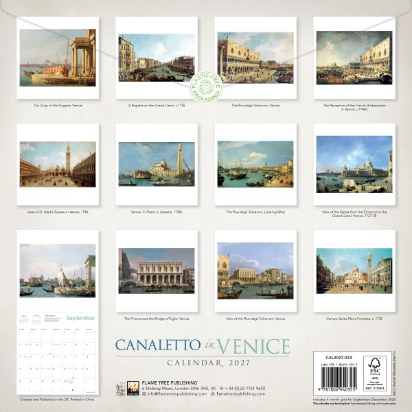 Giovanni Antonio Canal, commonly known as Canaletto, was an eighteenth century painter of Venetian cityscapes, that were popular with aristocrats who took the Grand Tour as part of their education. The paintings were taken as souvenirs of their visit and took pride of place in their own large country houses. In the mid-century, Canaletto visited England, staying for about six years, where he painted cityscapes of London that proved equally popular. Printed on FSC-certified paper, with plastic-free packaging.