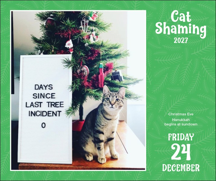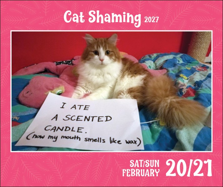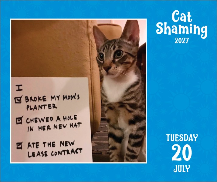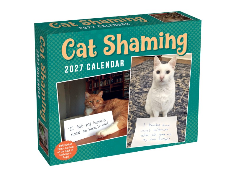 The Cat Shaming 2027 Day-to-Day Calendar offers a hilarious peek into the lives of furry feline offenders with stolen treats and zero regrets. Each daily page documents an outrageous kitty crime, complete with photographic evidence and owner-written “confessions.” From chewed cords to torn couch cushions, these cat-astrophic misdeeds are equal parts relatable and ridiculous. Featuring a combination of new troublemakers and whiskered purr-petrators from past years, this calendar is a must-have for anyone who’s ever loved a little furball with a big attitude.