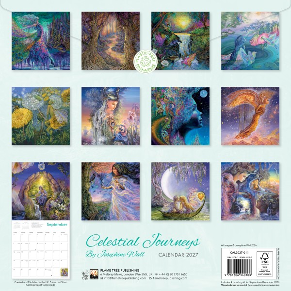 Take a breathtaking journey into the spiritual landscape with a calendar featuring fantasy works by contemporary artist Josephine Wall. Dazzling artwork with swirling backgrounds, vibrant colours and otherworldly beings bring this calendar to life with the inspirational sense that anything is possible. In this wall calendar informative text accompanies each work and the datepad features previous and next month’s views. Printed on FSC-certified paper, with plastic-free packaging.