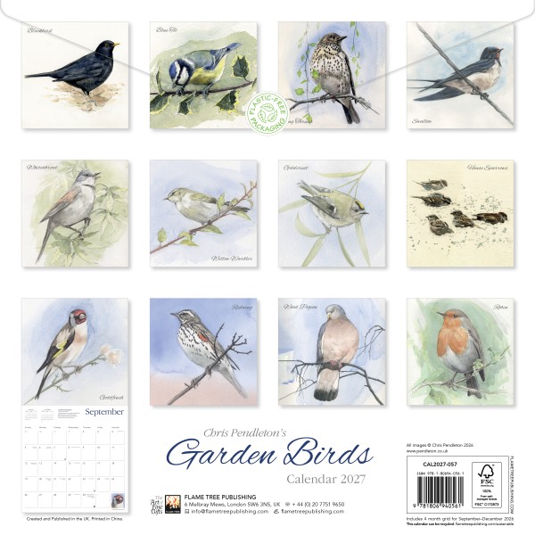 Artist Chris Pendleton is a passionate lover of wildlife, having drawn and painted birds and wildlife for as long as he can remember. This charming wall calendar features 12 beautiful watercolours of Garden Birds – from a stunning song thrush to a group of house sparrows and the much-loved robin. Informative text accompanies each work and the datepad features previous and next month’s views. Printed on FSC-certified paper, with plastic-free packaging.