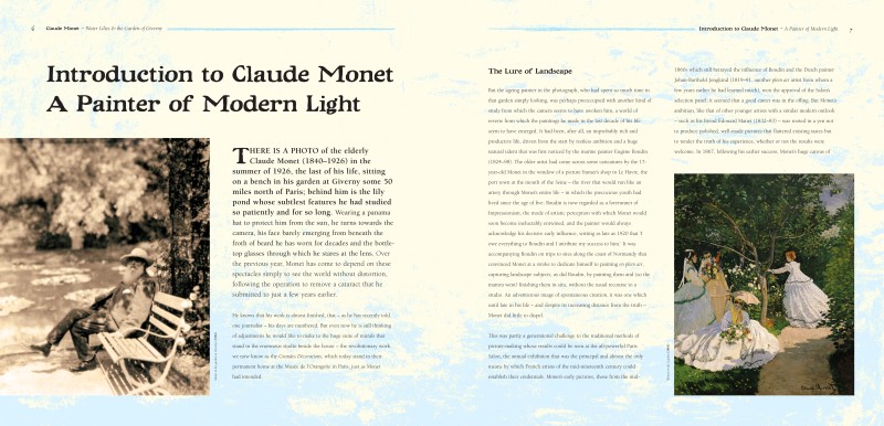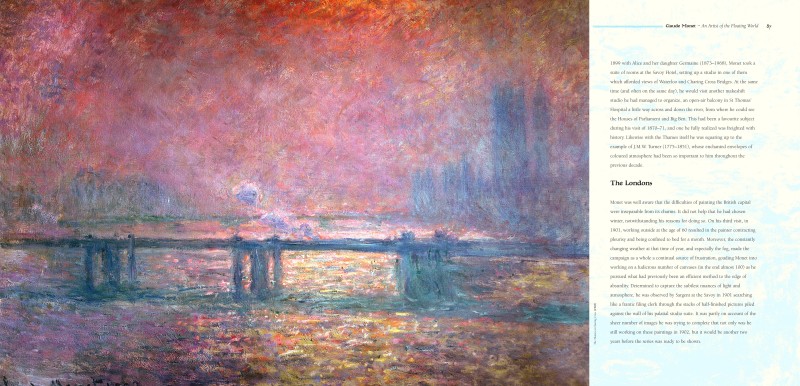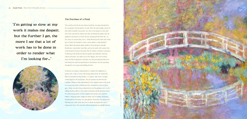 A gorgeous new edition with the cover printed on silver. Towards the end of his life and much inspired by Japanese water gardens, Monet spent a great deal of time in his beloved Giverny. Adorned with poppies, blue sage, dahlias and irises, the waters were disturbed only by bamboos and water lilies. His water garden was originally created to satisfy a need to be near water, and to provide a visual feast that could be enjoyed from his house. The pond was fed by the river Ru, and weeping willow and silver birch hung over its edges, caressing the fronds of the greenery and blossoms below. Its famous green wooden footbridge was built across the water and it became the central focus of many of his works. He said, ‘It took me some time to understand my water lilies. I planted them for pleasure.’ and so he began to work on what is probably the most famous series of paintings the world has ever seen.