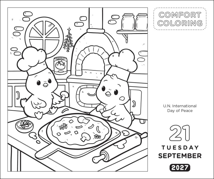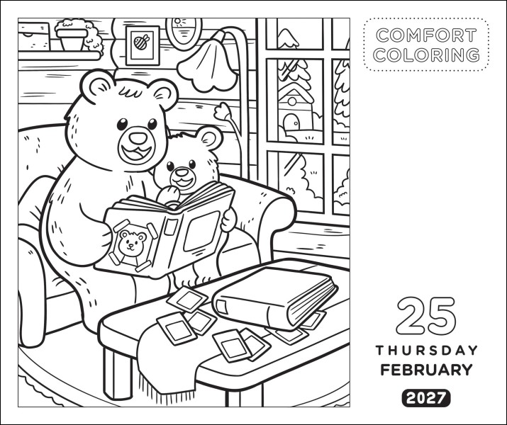 Bunnies knitting! Turtles Baking! Bears reading bedtime stories! The Comfort Coloring 2027 Day-to-Day Calendar is chock-full of cozy creatures, carrying out simple, everyday tasks in extra adorable fashion. Whether you're an avid colorist, or new to the joys of adult coloring, this daily calendar is the perfect meditative tool to get you focused, relaxed, and ready to take on the day.
