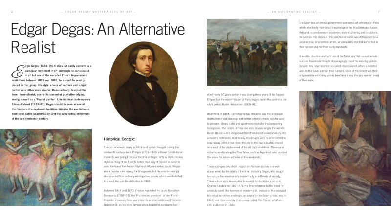 French artist Edgar Degas was famous for his drawing, painting, sculpture and printmaking. Although a member of the Impressionists, with Monet, Pissaro and Renoir his work focused on indoor subjects, particularly his acutely observed pieces on ballerinas. His masterful studies of real life resonate still today and he remains one of the most popular painters in the world. This beautiful new book showcases all of his major works (including Ballet Rehearsal, The Star and The Ballet Class), with detailed captions, and a long essay on life, art and influences.