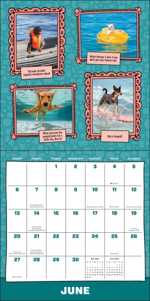 In this all-new wall calendar for dog lovers, each month features four photos of cute canines paired with candid captions. These playful pups offer humorous observations, self-care tips and more, all from the poochy POV.