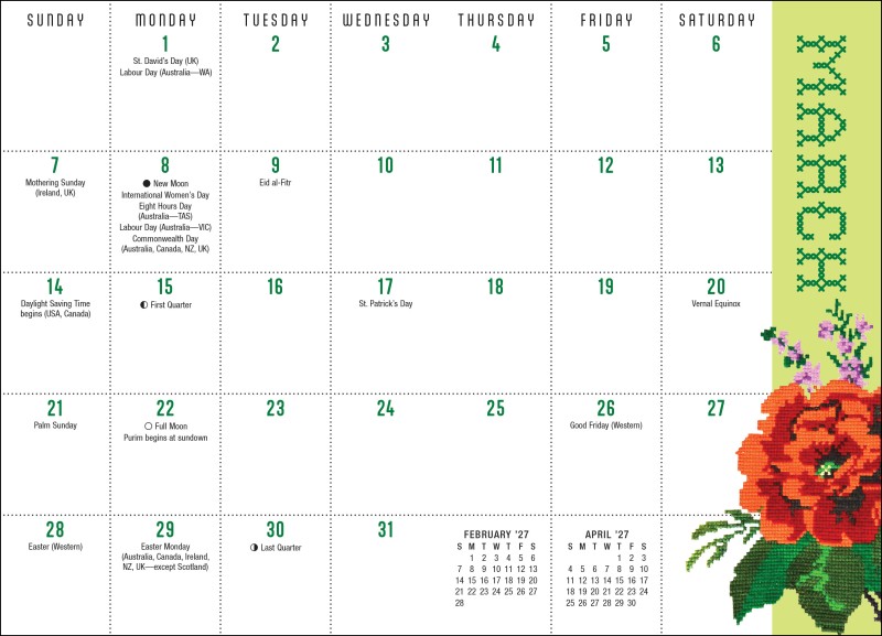 What day isn’t improved with a little Dolly? Perfectly sized for pockets, purses, totes, or backpacks, and easy to keep clean in a handy slipcase, the Dolly Parton 2027 Monthly Pocket Planner is ideal for fast reference, making lists, or jotting notes on the go. Embroidery-inspired florals add sweet and colorful detail to each spread.