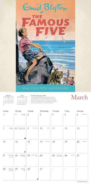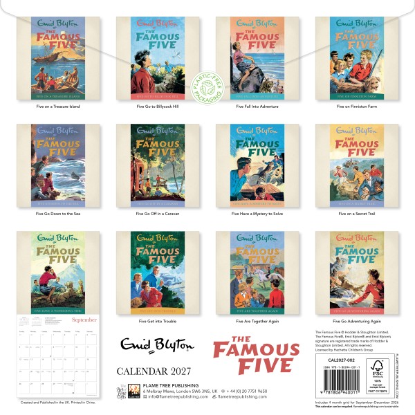 Enid Blyton (1897–1968) is renowned as one of the most popular and successful authors of all time, having written well over 700 books during her career. Among her most successful works are The Adventure Series, the Noddy series for young children, The Secret Seven and The Famous Five, which focused on the adventures of five friends – Julian, Dick, Anne, George and Timmy the dog. The Famous Five would prove so popular that Blyton would write 21 full-length books in the series, beginning in 1942 with Five on a Treasure Island and ending with 1963’s Five are Together Again. This calendar showcases the original artwork from the books. To this day, the series continues its success across various film and television adaptations. Informative text accompanies each work in this wall calendar and the datepad features previous and next month’s views. Printed on FSC-certified paper, with plastic-free packaging.