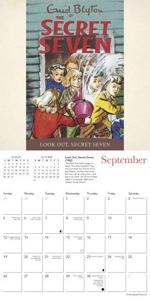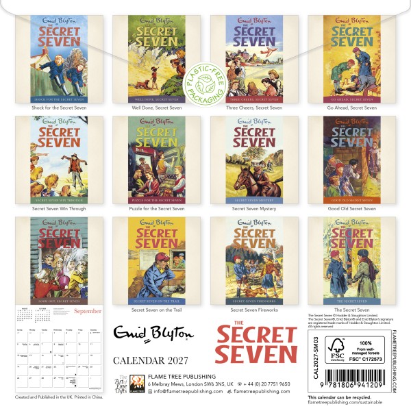 Enid Blyton (1897–1968) is renowned as one of the most popular and successful authors of all time, having written well over 700 books during her career. Among her most successful works are The Adventure Series, the Noddy series for young children, The Famous Five and The Secret Seven, which focused on the adventures of a group of crime-solving children. The Secret Seven made their first appearance in a series of seven short stories beginning in the late 1940s, before going on to appear in 15 full length novels, starting with 1949’s The Secret Seven and concluding with Fun for the Secret Seven in 1963. This calendar showcases the original artwork from the books. Informative text accompanies each work in this mini wall calendar and the datepad features previous and next month’s views. Printed on FSC-certified paper, with plastic-free packaging.