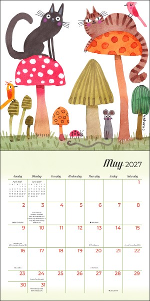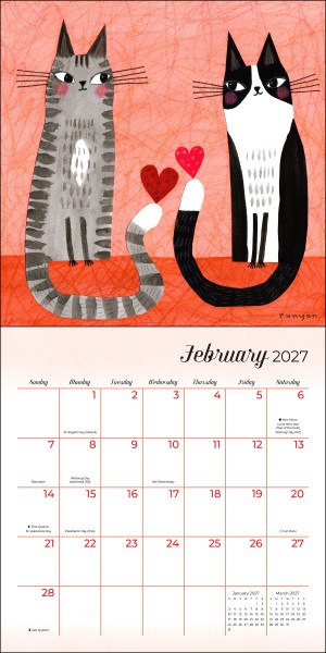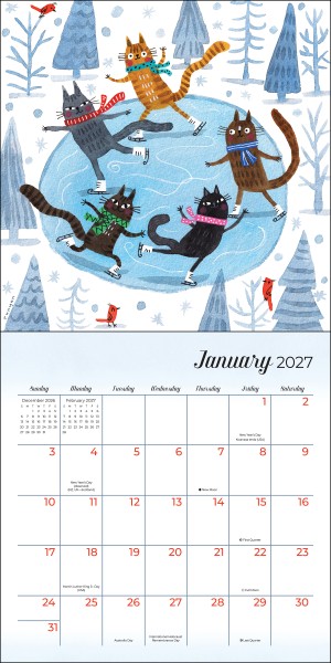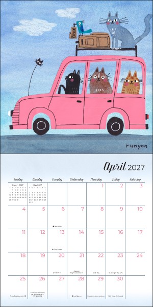 Brighten up your space with this eye-catching wall calendar featuring Terry Runyan’s watercolor art. An ardent cat lover in real life, she has mastered the ability to capture the playful and elegant nature of cats.