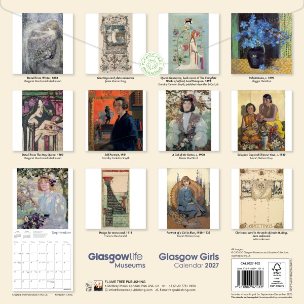 Featuring works by innovative Scottish artists from the late nineteenth and early twentieth centuries, this art calendar showcases the very best of their work in the Glasgow Museums collections. The 12 artworks, by well known female artists of Scotland, include Margaret Macdonald Mackintosh's The May Queen and Dorothy Carleton Smyth's Queen Guinevere. Informative text accompanies each work in this art calendar and the datepad features previous and next month’s views. Printed on FSC-certified paper, with plastic-free packaging.