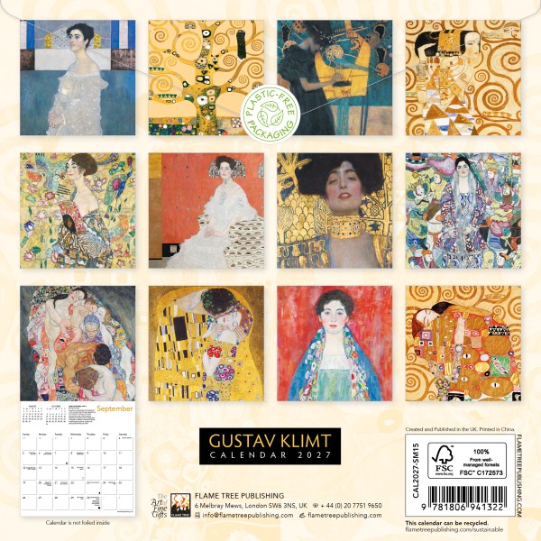 Gustav Klimt’s work is instantly recognizable, and this beautiful mini wall calendar showcases some of his most stunning work. The pieces range from Klimt’s golden designs for the Stoclet Frieze, to some of his elegant portraits of society women. In this mini wall calendar with a foiled cover, informative text accompanies each work, and the datepad features previous and next month’s views. Printed on FSC-certified paper, with plastic-free packaging.