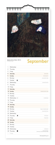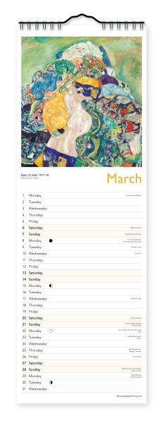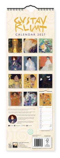 Gustav Klimt’s work is instantly recognizable, and this beautiful slim wall calendar showcases some of his most stunning work. The pieces range from Klimt’s golden designs for the Stoclet Frieze, to some of his elegant portraits of society women. Informative text accompanies each work, and the datepad features previous and next month’s views. Printed on FSC-certified paper, with plastic-free packaging.