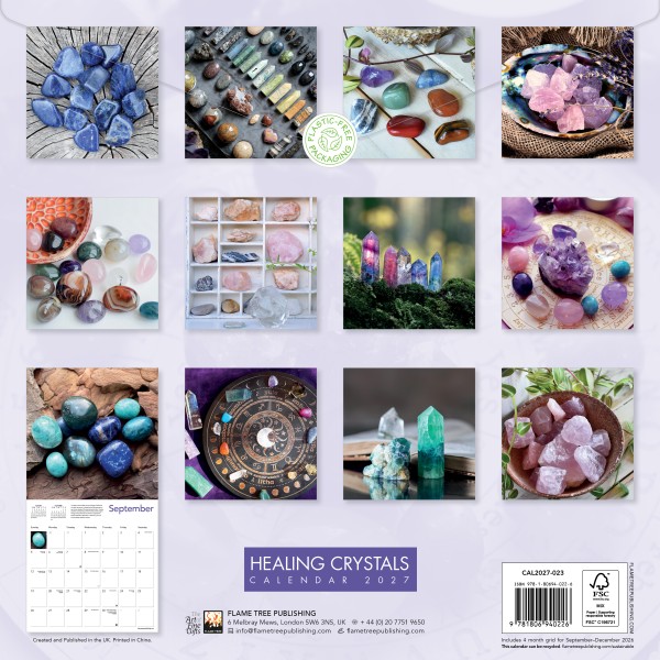 Healing crystals have long been used to act as a channel for healing, helping positive energy flow into the body and negative energy to be drawn out. Each crystal has distinctive properties that treat different things. In this calendar you will find an array of crystals shown in 12 enchanting images accompanied by informative text, and the datepad features previous and next month’s views. Printed on FSC-certified paper, with plastic-free packaging.