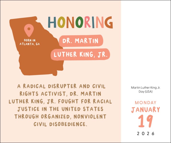 Each daily page of this desktop calendar features interesting, educational, and uplifting content that will inspire and engage lifelong learners in a lifestyle of social justice, political participation, and service to humanity. In Dani's signature style—colorful, engaging, and beautifully illustrated—entries include Black history facts, inspirational art, and advocacy and volunteering ideas.