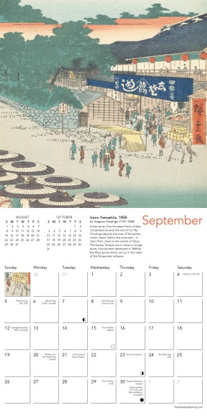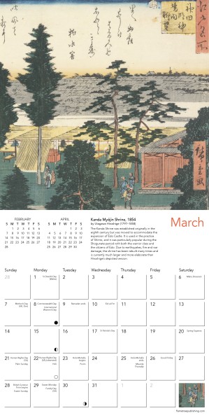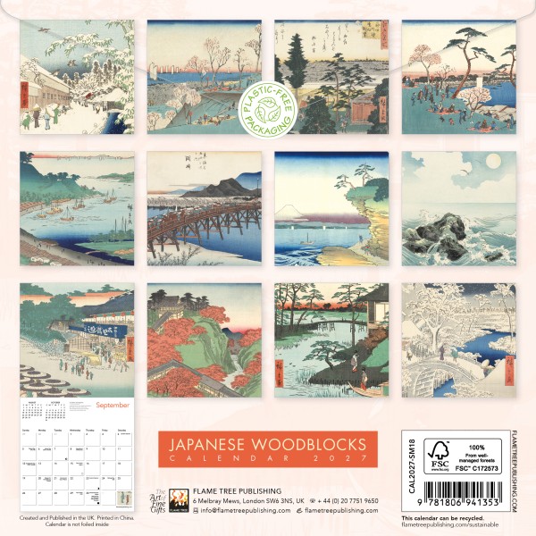 This mini wall calendar is filled with a visually dazzling array of woodblock prints from masterful Japanese artists including Utagawa Hiroshige. The artworks feature dramatic rocky cliffs, natural beauty and mountainous landscapes, all created in a mesmerizing style and displayed with vibrant colours. In this mini calendar, informative text accompanies each work, and the datepad features previous and next month’s views. Printed on FSC-certified paper, with plastic-free packaging.