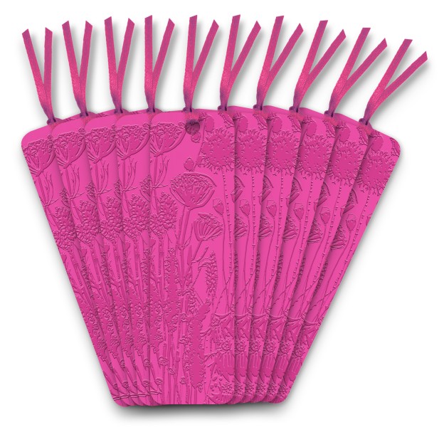 Sold in packs of 10. Keep the page in your book with this gorgeous and satisfyingly tactile, flexible, Artisan Art vegan leather bookmark, embellished with a beautiful design on both sides, with a silky ribbon and a peelable barcode sticker. A great addition to our Artisan Art range. Featuring art by Lucy Innes Williams.