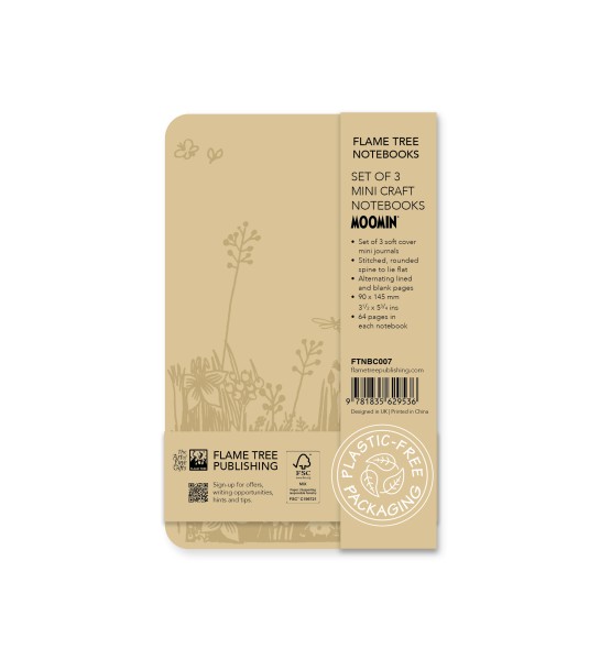 The Moomin Set of 3 Mini Craft Notebooks features a collection of three mini notebooks with alternating lined and blank pages. Each notebook has a different beautiful, neutrally coloured design printed onto its natural craft-paper cover: A Dangerous Journey, Moomin Bookshelves and Moomin Love. Sustainably designed using FSC materials and with plastic-free packaging, they are sure to delight everyone!