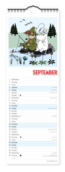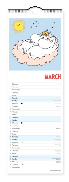 A true Scandinavian classic, the Moomins, created by Tove Jansson, have been captivating audiences for decades. This slim-format calendar features 12 touching colour illustrations of the much-loved Moomin characters, depicting their adventures through the year in Moominvalley. Printed on FSC-certified paper, with plastic-free packaging.