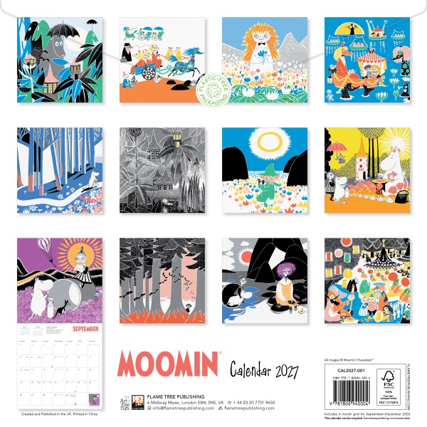 A true Scandinavian classic, the Moomins, created by Tove Jansson, have been captivating audiences with their adventures – in both book and television form – for decades. Featuring 12 touching illustrations of the much-loved characters of Moominvalley, this art calendar depicts all your favourite characters, from Moominmamma to Little My and Snufkin. Images are taken from Jansson's two picture books, The Book about Moomin, Mymble and Little My and Who Will Comfort Toffle? Informative text accompanies each work and the datepad features previous and next month’s views. Printed on FSC-certified paper, with plastic-free packaging.