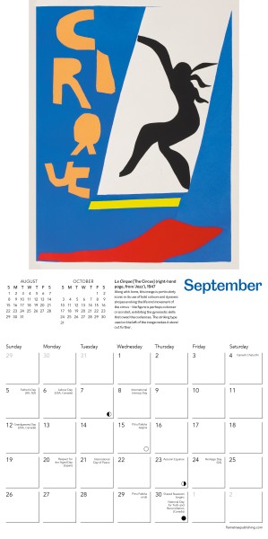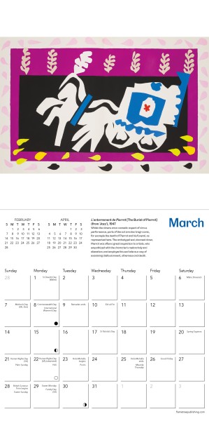In 1942 Matisse was commissioned to make a book of colour prints. Initially, he intended it to be about the circus, but decided to depict other subjects as well as his original theme. He selected Jazz as the title, to reflect the vibrancy and rhythm of the images. At a late stage, Matisse decided to write an accompanying text, consisting of loosely connected thoughts on painting, life and the making of the book. This beautiful art calendar brings together a selection of 12 of the bright and bold artworks, created using his distinctive paper-cutouts style, from this fabulous work held by National Galleries of Scotland. Informative text accompanies each work and the datepad features previous and next month’s views. Printed on FSC-certified paper, with plastic-free packaging.