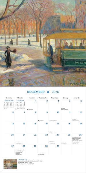 Featuring 13 iconic paintings and prints of New York City by William James Glackens, Walker Evans, Florine Stettheimer, and others, this 12-month calendar brings Gotham to life through the eyes of artists. Explore the lush lawns of Central Park. Visit legendary landmarks such as the Brooklyn Bridge and the Statue of Liberty. And revel in the famed nightlife of Times Square and Harlem. All the works included are from the world-renowned collection of The Metropolitan Museum of Art.