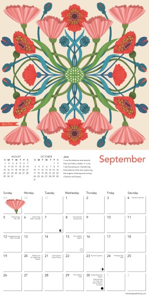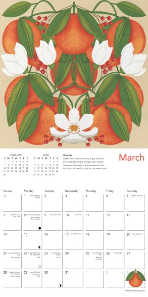 Nina Pace is a painter, illustrator and surface designer based just outside New York City, whose artwork embraces the full and glorious spectrum of hues and patterns embodied in the natural world. She is awestruck by the sheer variety of petal shapes, the detailed patterning and vein layouts. When creating a new piece, Nina takes this inspiration from nature and lets the design build organically. This mini wall calendar showcases 12 of her bold and intricate works, accompanied by words from the artist herself. The datepad features previous and next months views in this art calendar. Printed on FSC-certified paper, with plastic-free packaging.