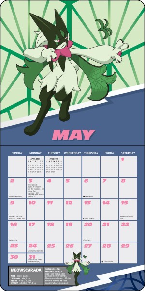 Spend 2027 with your favorite Pokémon from the hugely popular animated television series Pokémon Horizons: The Series. Aspiring Pokémon Trainers can build up their Pokédex one month at a time with 13 Pokémon from the in-world Kalos region, including Pikachu, Mega Garchomp, Mega Venusaur, Mega Lucario, and more. Featuring Pokémon of all shapes and sizes, this 12-month calendar is perfect for every Pokémon Trainer.