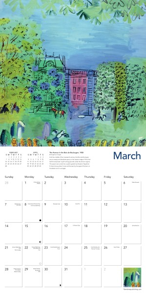 Raoul Dufy, born in 1877, was a prominent French painter in the early twentieth century. Painting in a Fauvist style which he gradually adapted and made his own, Dufy utilized vibrant colour and energetic brushwork to depict vivid still life scenes and landscapes of the French Riviera where he lived. With a selection of 12 delightful artworks, this calendar showcases Dufy’s unique skill and vision. Informative text accompanies each work, and the datepad features previous and next month’s views. Printed on FSC-certified paper, with plastic-free packaging.