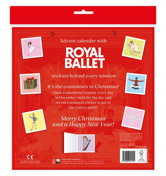 Enjoy the countdown to Christmas! Open a door every day in December and find a beautiful Christmas sticker! This advent calendar is a delight for adults and children with its lovely cover and stickers featuring illustrations from The Royal Ballet illustrator Kate Hester, a classically trained ballet dancer and self-taught illustrator based in London. The Royal Ballet is a world-class classical ballet Company, based at the Royal Opera House in Covent Garden, London. The Royal Ballet was founded by Dame Ninette de Valois and is now directed by Kevin O’Hare. It brings together dancers, choreographers, composers, conductors, directors and creatives from all over the world. Printed on FSC-certified paper.