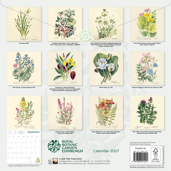 With over 70 acres of picturesque landscape, Royal Botanic Garden Edinburgh is a must for all visitors. This delightful wall calendar celebrates the beautifully delicate yet accurate botanical watercolours of British plants by Charlotte Cowan Pearson, an outstandingly talented amateur artist born in 1837, examples of whose paintings are held in an album in the RBGE's Library. Informative text accompanies each work and the datepad features previous and next month’s views. Printed on FSC-certified paper, with plastic-free packaging.