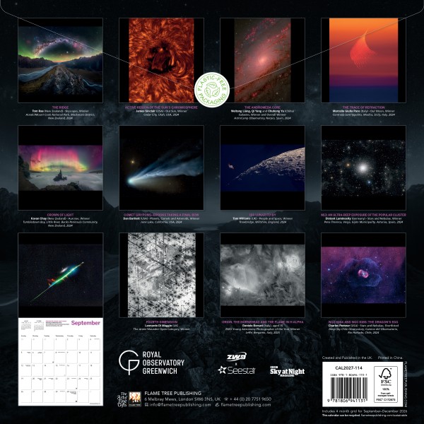 In partnership with the Royal Observatory Greenwich’s Astronomy Photographer of the Year competition, prepare to be wowed by this calendar of astronomical photography. With 12 phenomenal images, including the winners from categories such as People and Space, Our Moon, Stars and Nebulae, and Aurorae, this is a truly mesmerising collection of astrophotography. Informative text accompanies each work and the datepad features previous and next month’s views. Printed on FSC-certified paper, with plastic-free packaging.