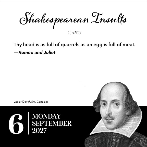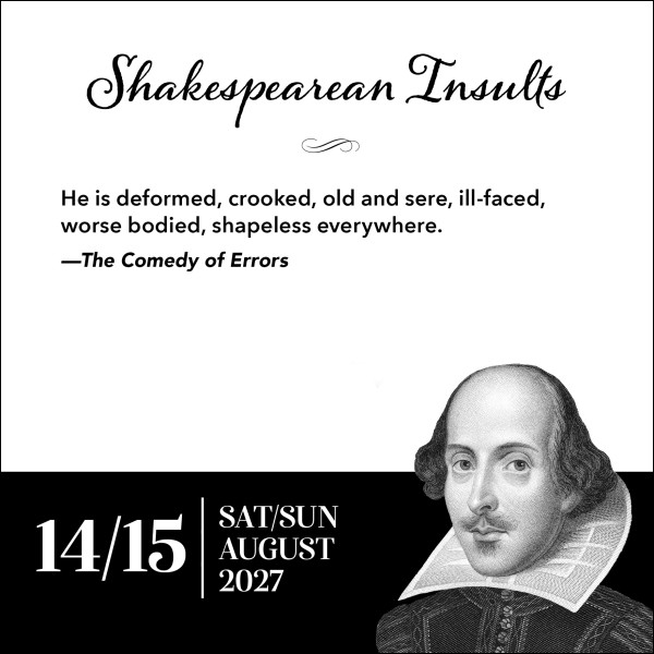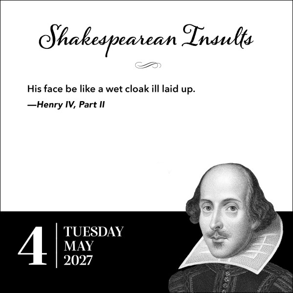 This year roast with rhythm and mock with meter! The Shakespearean Insults 2027 Day-to-Day Calendar transforms your everyday banter into witty wordplay and sophisticated zingers worthy of the Globe itself. Enjoy over three hundred handpicked insults straight from Shakespeare’s plays, guaranteed to keep you laughing and talking trash all year long. Perfect for drama lovers, word nerds, and anyone who wants to sound smart while throwing shade.