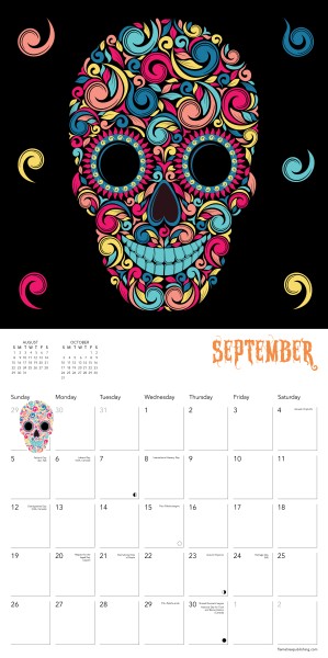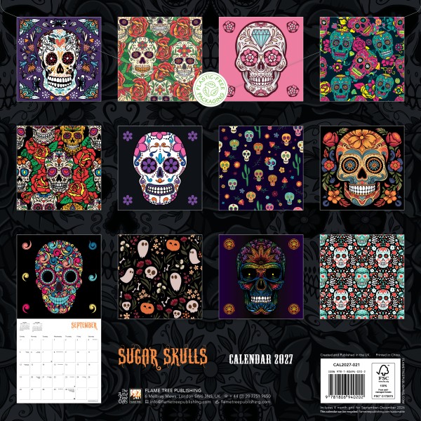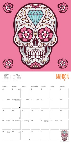 Sugar skulls are used as an offering to the deceased during the Mexican celebration Day of the Dead, which focuses on remembering loved ones, and celebrating the continuity of life. This calendar features traditional and artistic interpretations of sugar skulls, with a datepad that features previous and next month’s views. Printed on FSC-certified paper, with plastic-free packaging.