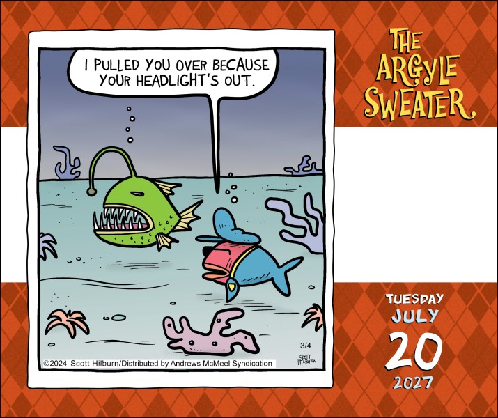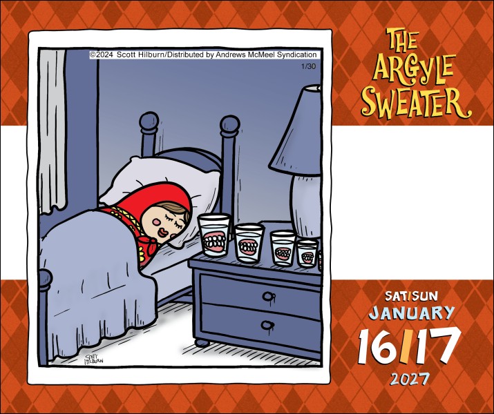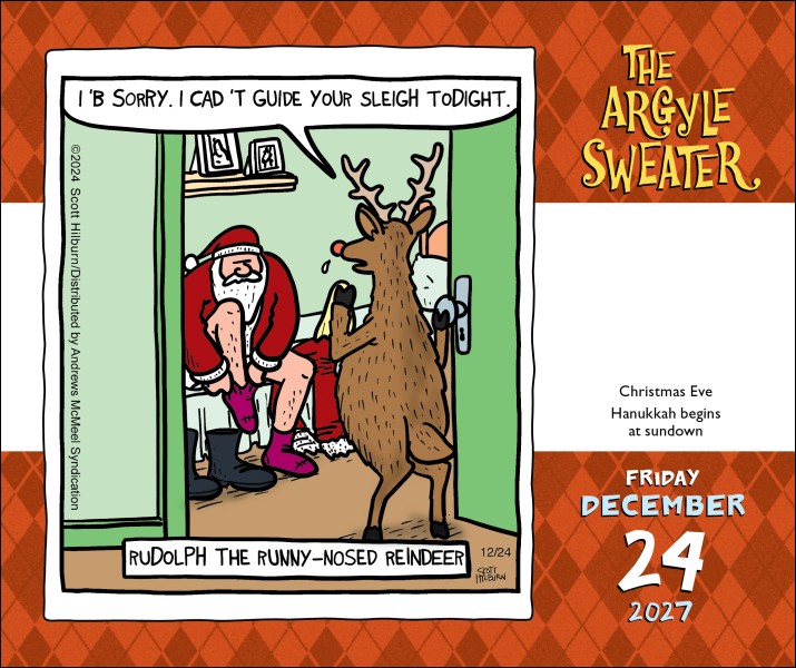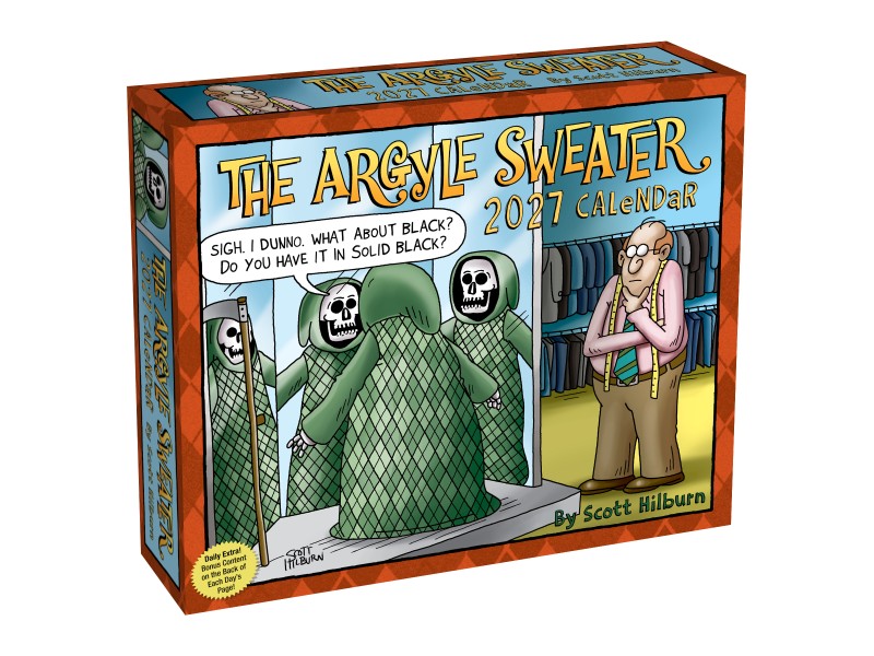Scott Hilburn’s The Argyle Sweater 2027 Day-to-Day Calendar brings a fun slash of surrealism to your everyday routine. Each daily page features full-color comics, replete with witty wordplay and clever parodies of social and cultural subjects. From talking piñatas to personified snowmen—this calendar has it all! Perfect for fans of clever comics, off-beat humor, and talking animals with strong opinions.
