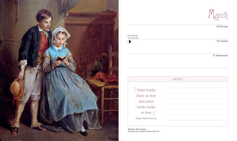 Artists throughout the centuries have been drawn to readers as their subject, depicting them absorbed by literature in a variety of different settings. With art by Charles Edward Perugini as its cover, this desk diary features beautiful paintings from a range of artists, as well as inspirational quotes celebrating the love of reading and joy of books. Additional content is included for readers to monitor their monthly reading progress, create wish lists for their TBR pile and collect their own treasured quotes. Printed on FSC-certified paper.
