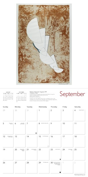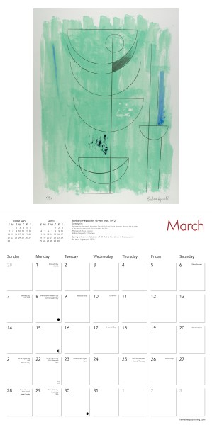 This calendar is a stunning display of 12 prints by Barbara Hepworth, one of the most important artists of the 20th century. The printmaking process continued to be instrumental in her approach to creating sculpture, achieving an abstract sense of space, form and texture through the use of transparent smooth layers and bold mark-making. The works are taken from the collections of The Hepworth Wakefield, an award-winning art gallery in the heart of Yorkshire, who offer an impressive compendium of modern British art. Informative text accompanies each work and the datepad features previous and next month’s views. Printed on FSC-certified paper, with plastic-free packaging.