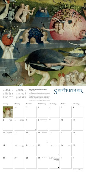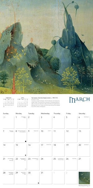 Hieronymus Bosch lived and worked over 500 years ago in the Dutch town of ’s-Hertogenbosch, from which he takes his name. He is best known for his fantastical, wondrous art full of strange creatures, both grotesque and heavenly. The work he has left behind still defies the imagination. This calendar portrays 12 complex, impressive and debauched artworks by Bosch. Informative text accompanies each work, and the datepad features previous and next month’s views. Printed on FSC-certified paper, with plastic-free packaging.