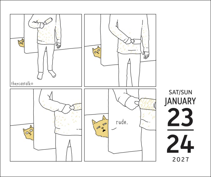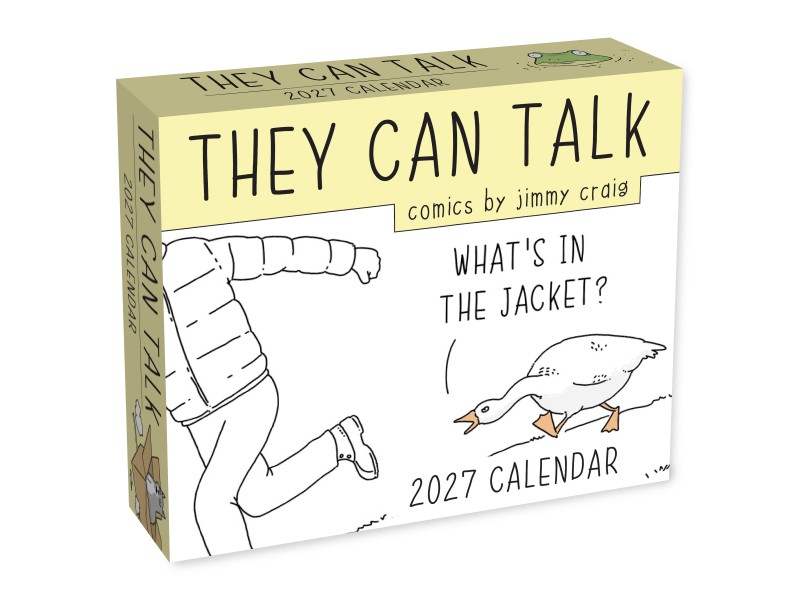 The They Can Talk Comics 2027 Day-to-Day Calendar by Jimmy Craig delivers a new laugh each day, featuring cats, dogs, backyard birds, whales, bears, bugs, and more sharing their secret thoughts and relatable gripes. Perfect for desks, counters, or nightstands, this tear-off calendar makes a delightful gift for pet owners, animal lovers, and anyone who enjoys clever, quirky humor all year long.