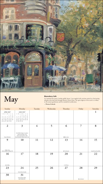 This 12-month calendar includes information about the original artwork and locations, as well as plenty of room to add your own events, appointments, and reminders each month, and comes packaged in a sturdy, matching plastic-free envelope. Paintings include Crater Lake; Spring in the Alps; Wailea Chapel; and Venice Canal, among others.