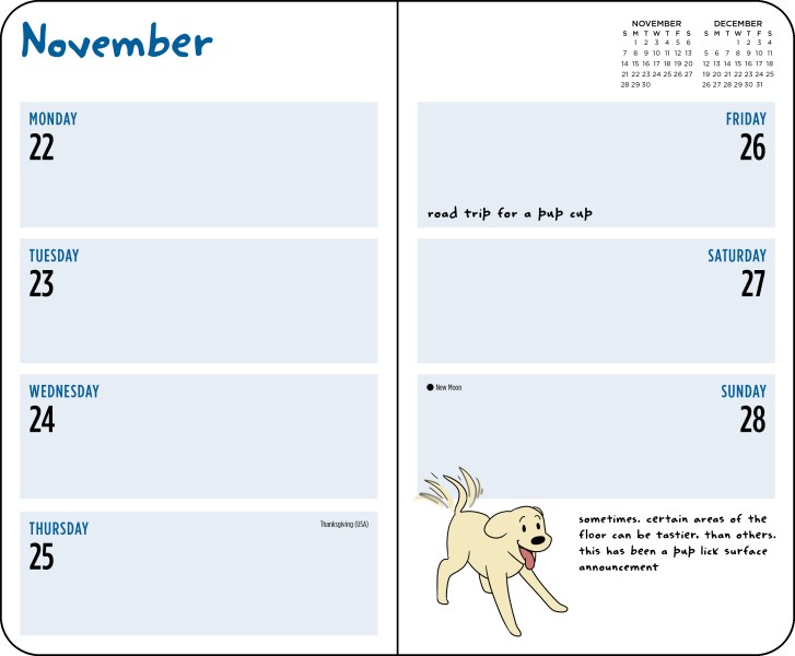 From Matt Nelson, the internet's dog-humor king, this 2027 planner showcases funny musings and illustrations of a dog while offering plenty of room for schedules, to-do lists, and notes. Monthly pages for big-picture planning at the beginning of the organizer are followed by a year’s worth of weekly spreads.