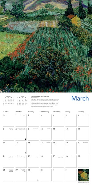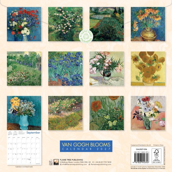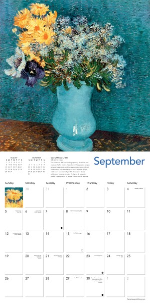 Vincent van Gogh is one of the most famous and influential artists in modern history. His extensive portfolio exceeds some 2,000 artworks, of which 800 were oil paintings. Some of his most recognizable natural works can be found in this stunning wall calendar: Sunflowers, Field with Poppies and Irises, to name a few. Informative text accompanies each work and the datepad features previous and next month’s views. Printed on FSC-certified paper, with plastic-free packaging.